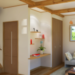 現場に材料を持ってきて、大工さんがその場でつくるタイプ。板やパーツの状態で材料を運ぶため、運搬コストが安く、大きさの微調整などもしやすいのがメリット。塗装の色味も、インテリアや床の色にしっかり合わせられます。