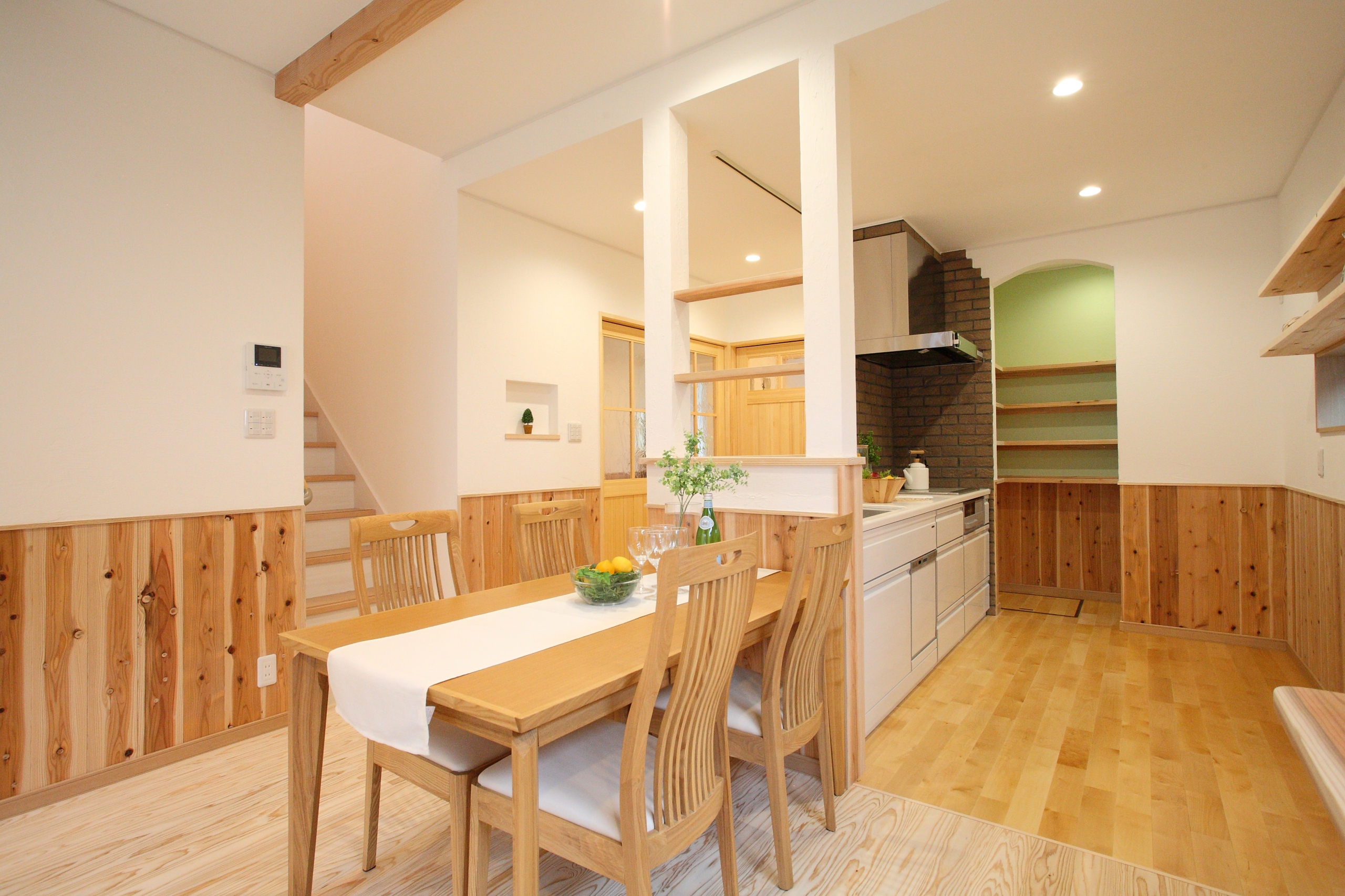 リビング・ダイニングに造作棚を設けた“見せる収納”の施工事例。