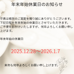 下記日程を年末年始の休業とさせていただきます。